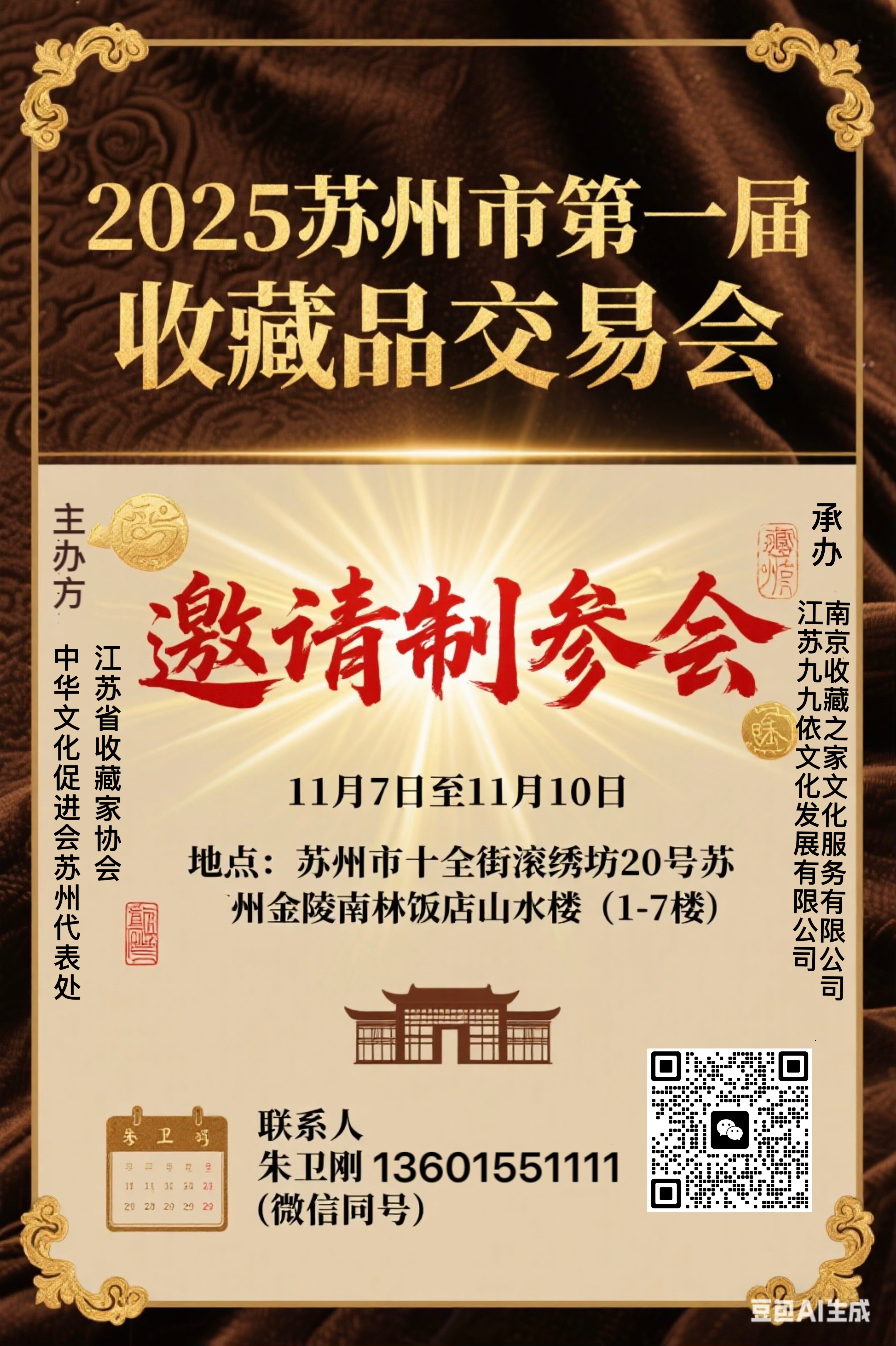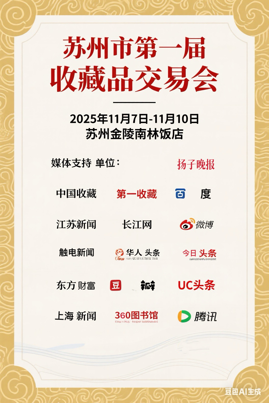 传承文化根脉,汇聚收藏精华。由中华文化促进会苏州代表处与江苏省收藏家协会联合主办的“2025苏州市第一届收藏品交易会”,定于2025年11月7日至10日在苏州盛大启幕。 本次交易会旨在搭建高品质收藏交流平